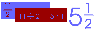 To convert an improper fraction into a mixed number, divide the numerator by the denominator and use the remainder as the new numerator. The denominator stays the same.