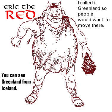 Eric the Red and his father, Thorvald, were some pretty rough customers. It seems that they got themselves into trouble in Norway around the year 1000. They had to leave the country, so they headed off to Iceland.